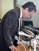 記者会見で頭を下げる村瀬清司・社会保険庁長官